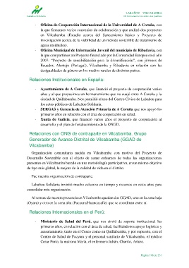 Relaciones con ONG de contraparte en Vilcabamba. Grupo