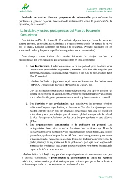 1. Las Instituciones, fundamentalmente la municipalidad, pero también otras